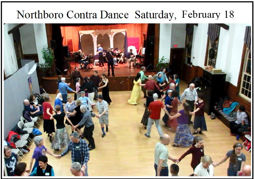 Last scheduled Northboro Contra Dance was Saturday, March 29 at the First Parish UU on 40 Church St. in Northborough starting at 2:00 to 4:30pm. Tod Whittemore called to the music of Accentricty (Debby Knight, Carol Bittenson, and Paul Lizotte). https://www.facebook.com/groups/155077963529